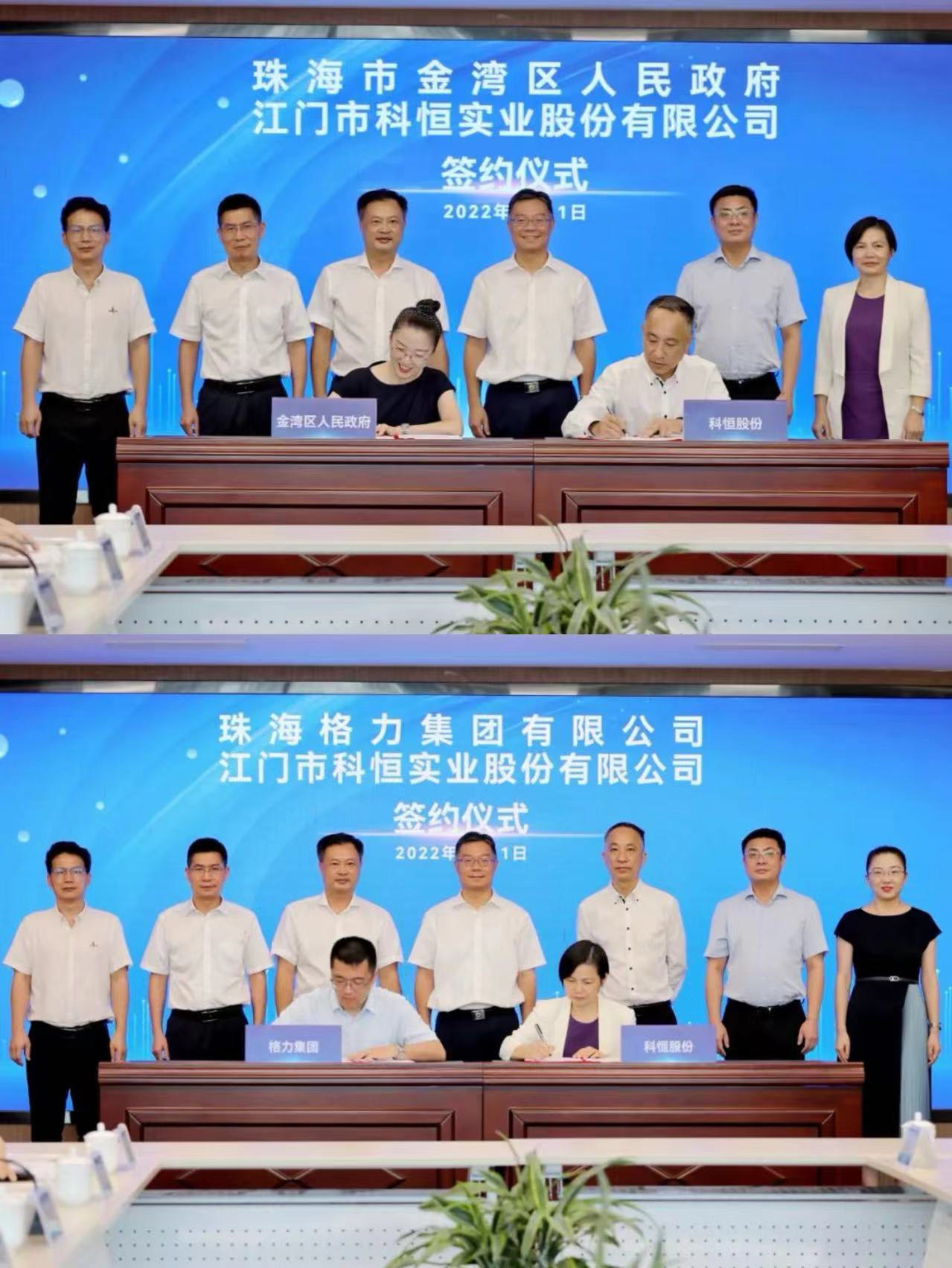 2022年7月,珠海市金灣區(qū)人民政府、珠海格力集團與科恒股份簽訂合作協(xié)議,科恒新能源材料及裝備項目將落戶珠海金灣 。